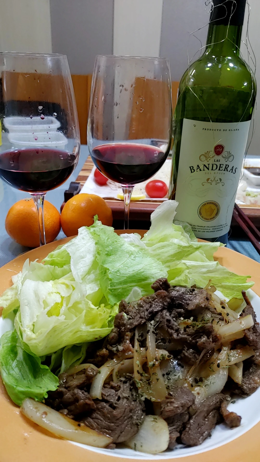 화이트 와인이 더 어울린다는 해산물 안주에 레드 와인을 마시고 있다는 현실적인 이유로 호주산 소고기 안창살을 조금 더 굽기로 합니다. 이런 제길...먹다보니 이 번에는 와인이 떨어지네요. 티위스트 캡이라면 남겨도 좋은 지라 베어풋 카베네 소비뇽 캘리포니아 라는 미국산 와인을 한 잔씩 더 따릅니다.