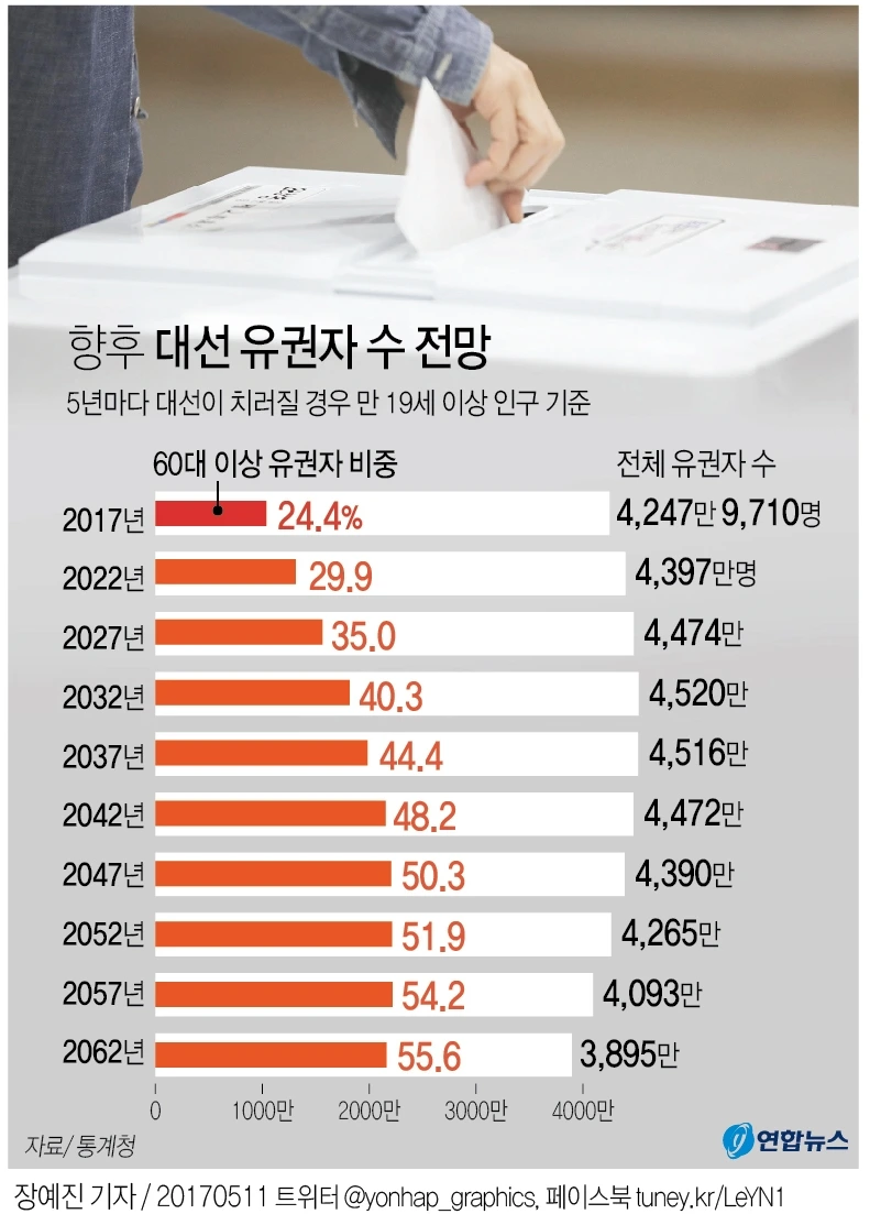 유권자수와 노령층 비율로 보는 미래