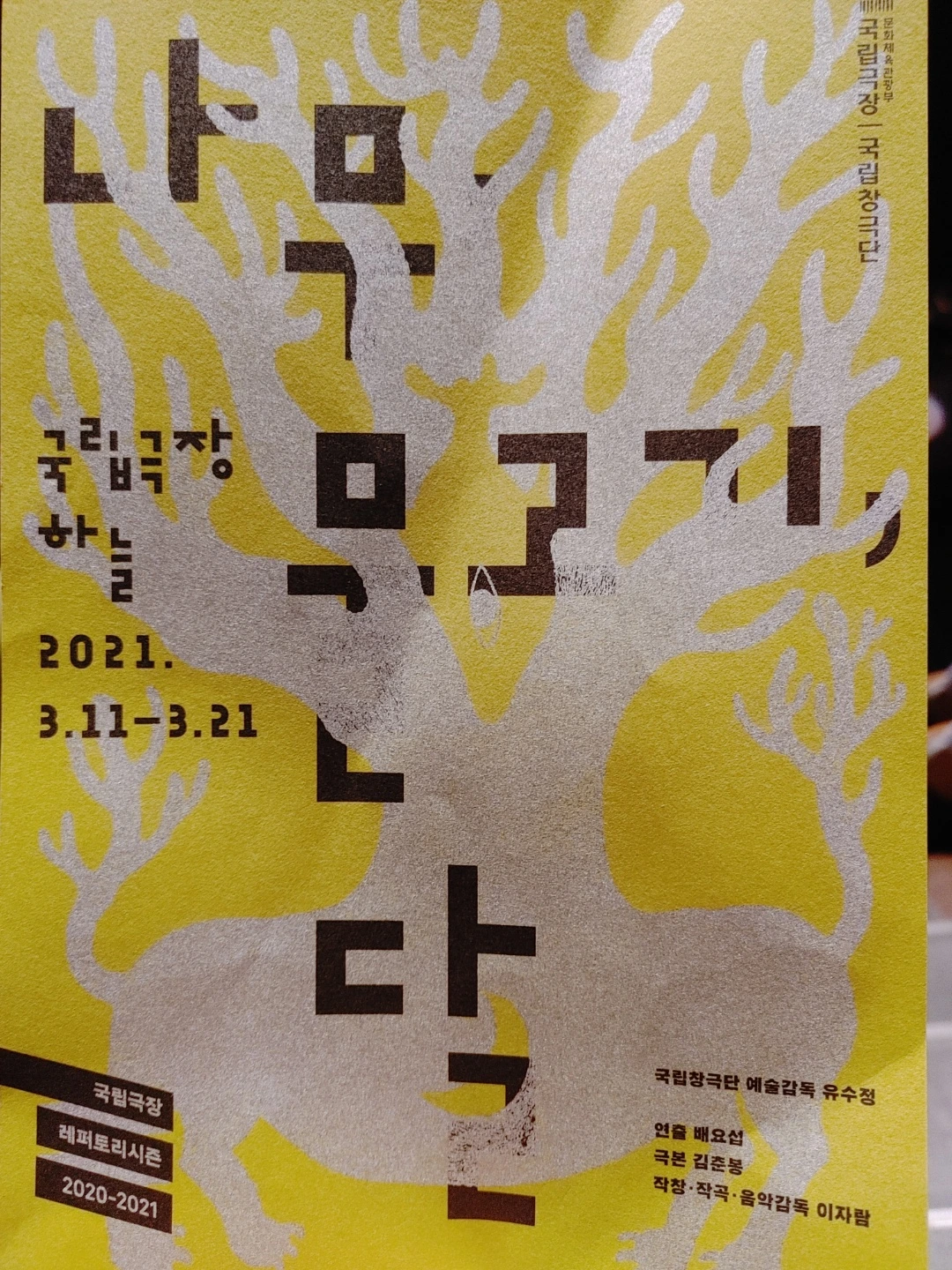 21번째 작품은 어렵게 예약한 국립극장 국립창극단의 창작공연 나무 물고기 달입니다. 작년에 아비, 방연을 보고 우리 창극의 매력에 푹 빠졌습니다.