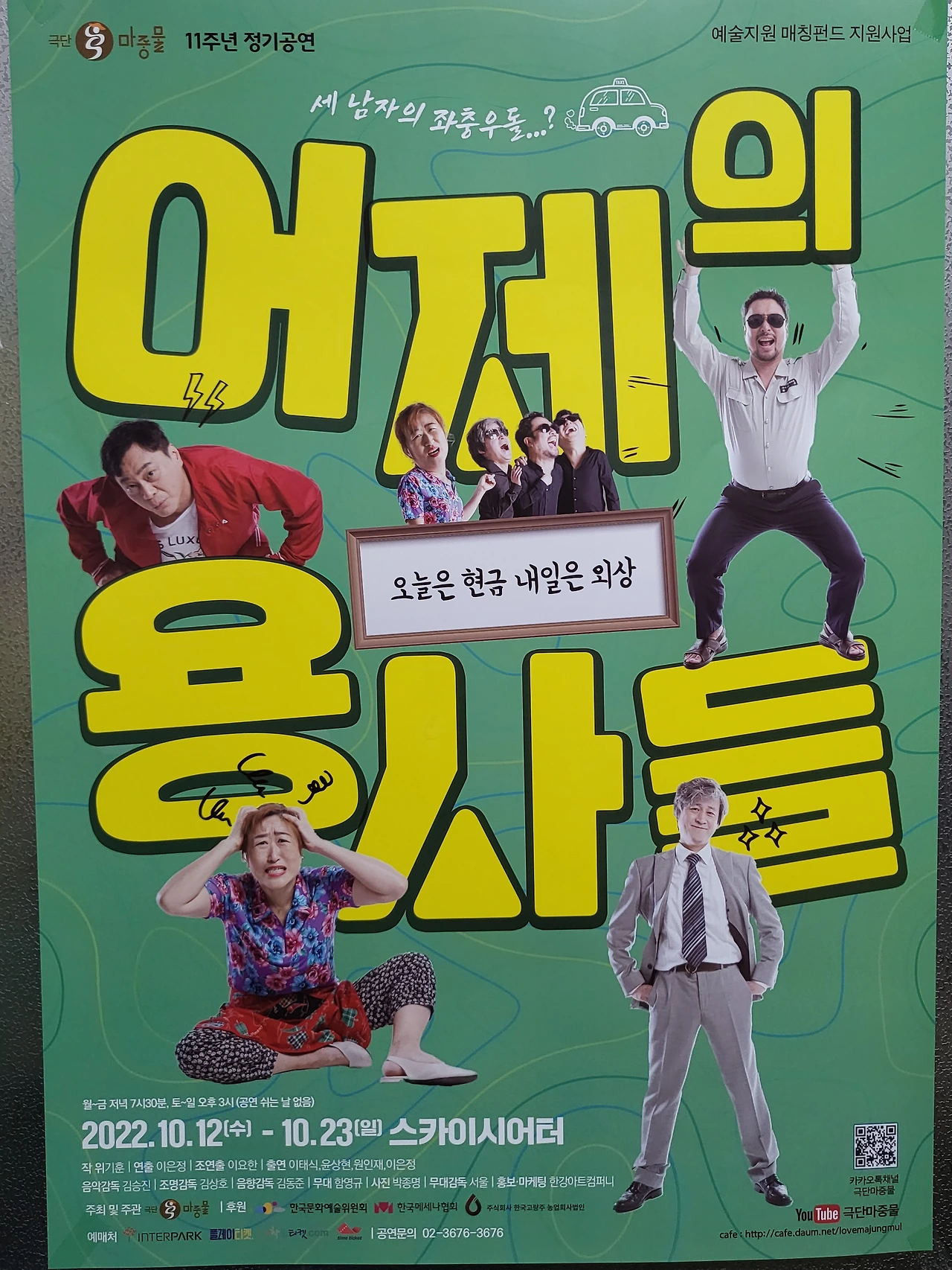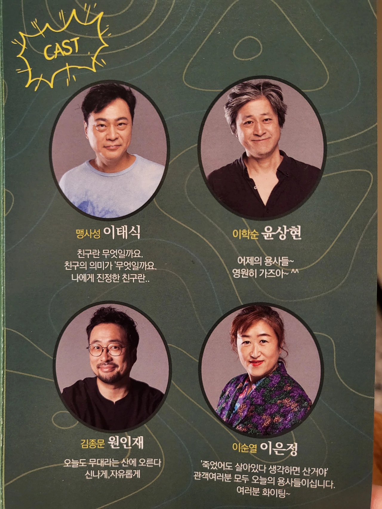 개그맨으로 전성기를 누리다 뇌졸중이 와서 활동을 중단했고 연극배우로 다시 일어선 칠수와 만수르에서 만났던 이태식씨와 소녀상을 소재로 위안부 할머니들의 이야기를 다룬 뚜껑없는 열차에서 인상적인 연기를 펼쳤던 윤상현씨가 나온다는 소식에 나름 응원과 지지의 뜻을 담아 어제의 용사들을 보았습니다.