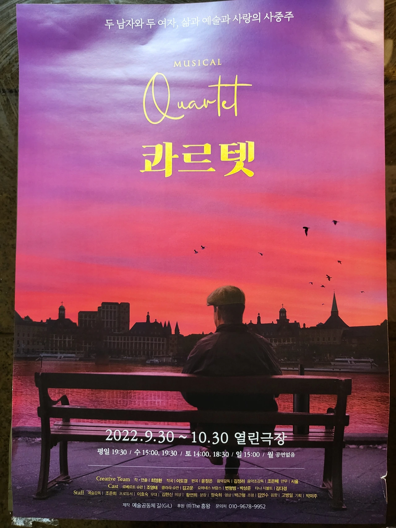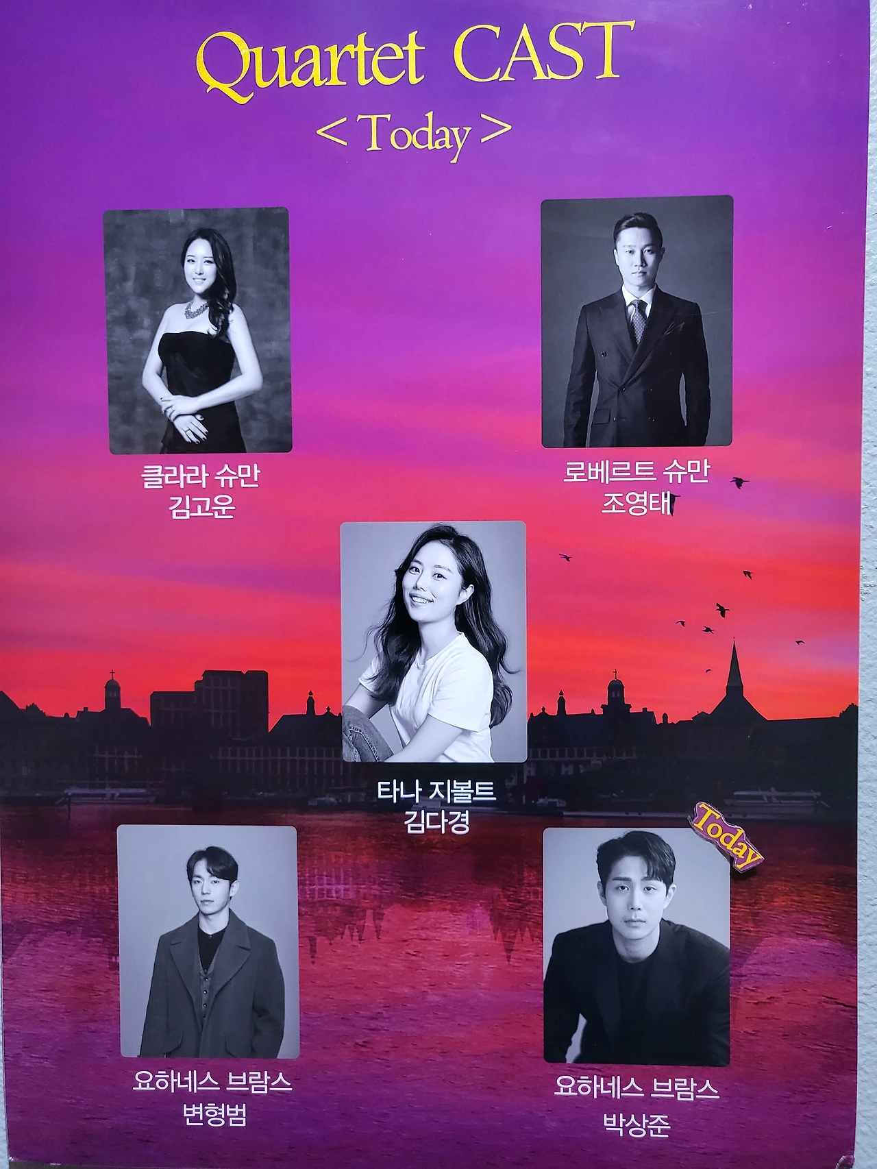 강남에서 김응수 교수의 점과선 바이올린 연주회를 간 적이 있었는데, 거기서 베토벤, 브람스, 바흐의 곡과 이야기를 접할 수 있었습니다. 그 때 브람스를 소개하면서 슈만의 집에서 사사할 때 슈만부인을 사랑하게 되었노라는 이야기를 들은 바 있는데, 오늘 뮤지컬 콰르텟은 바로 그들의 이야기입니다.