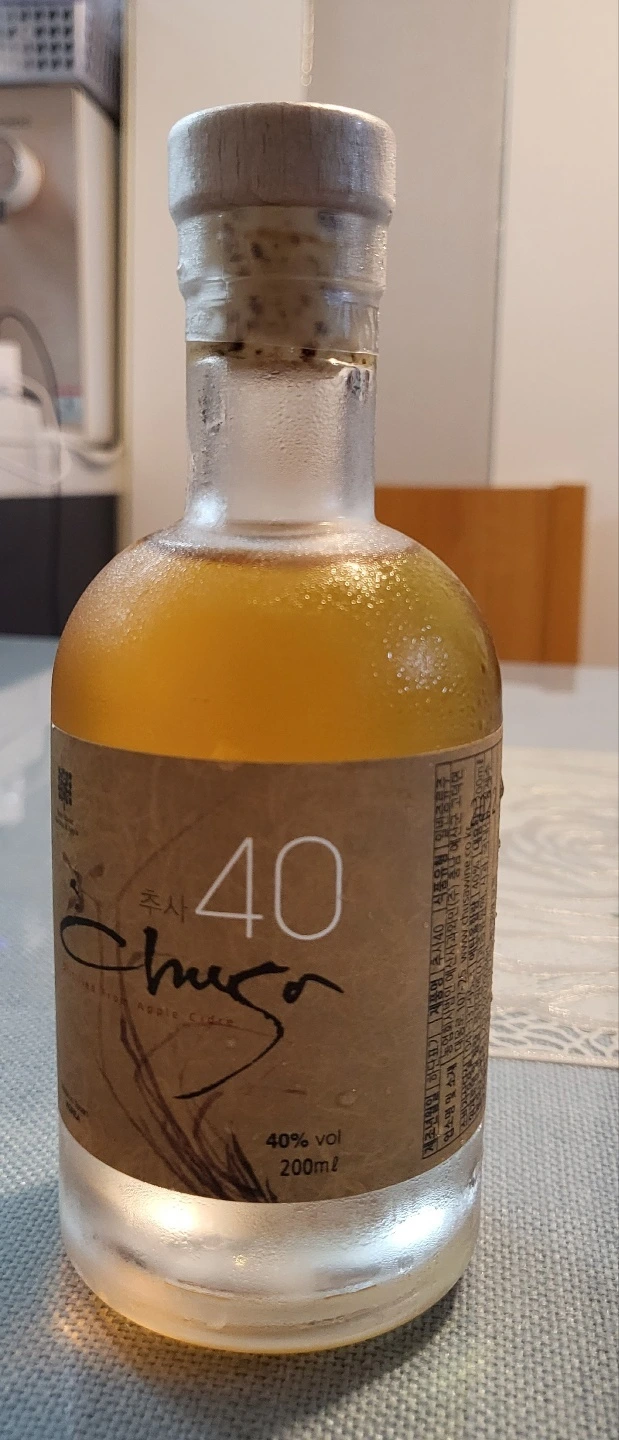 두번째 술은 추사인데, 일전에 마신 추사25는 사과향이 아주 감미로운데 추사 40은 오크통에서 숙성하여 색과 맛이 양주에 가까워졌습니다. 문배술보다는 목넘김이 부드러웠지만 오크향만 가득하여 추사라는 사과증류주의 정체성을 완전히 잃어버렸다는 점에서 높은 점수를 주기 어렵더군요.