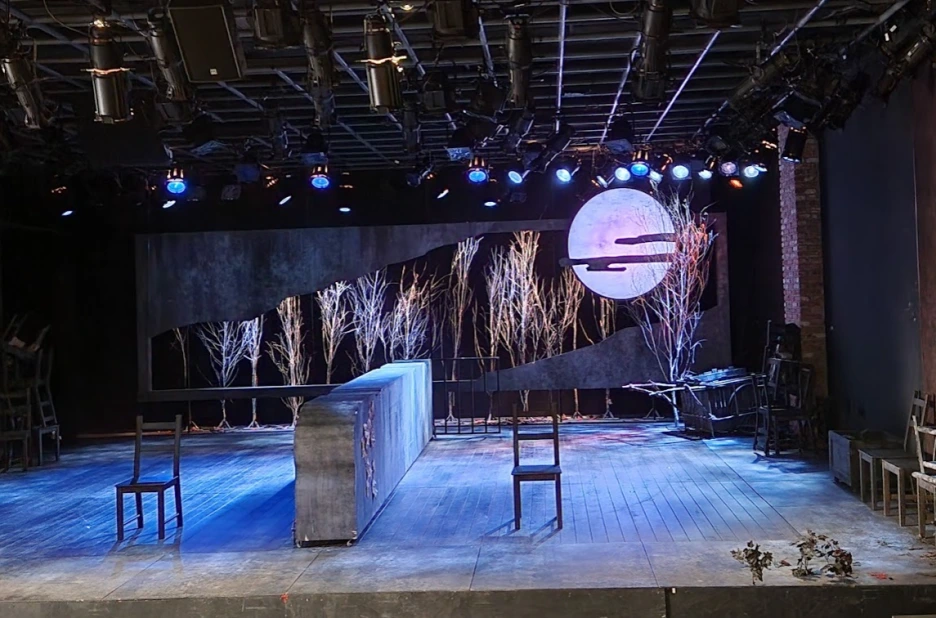 뭔가 기대치를 끌어올리는 무대입니다. 의자가 있는 것으로 보아 저 벽을 사이에 두고 두 명의 남자가 나와서 앉은 상태에서 90분간 대화를 주고받는 형식? 뭐 이런 생각을 하면서 우리는 조용한 잡답을 이어갔습니다.