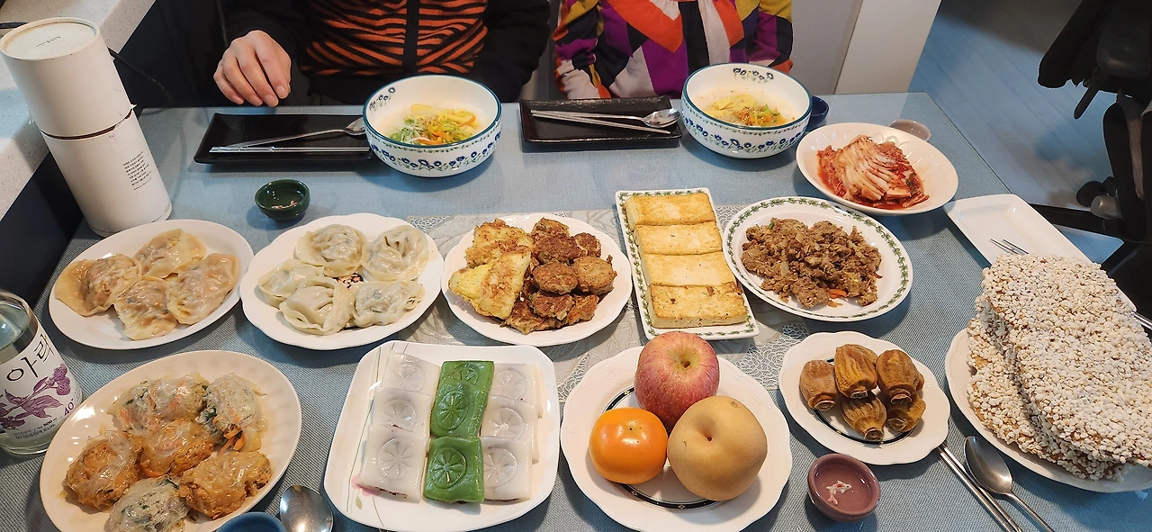지방도 없고, 앉은뱅이 젯상도 없이, 정성들여 만든 음식을 살아있는 부모님이 받으십니다. 아들도 얼굴을 본 적이 있는 증조할머니에 대한 이야기로 시작해서 2시간에 걸쳐 옛이야기와 최근의 신변잡기를 나누며 좋은 증류주 전통주로 새 해 새 날을 축하합니다.