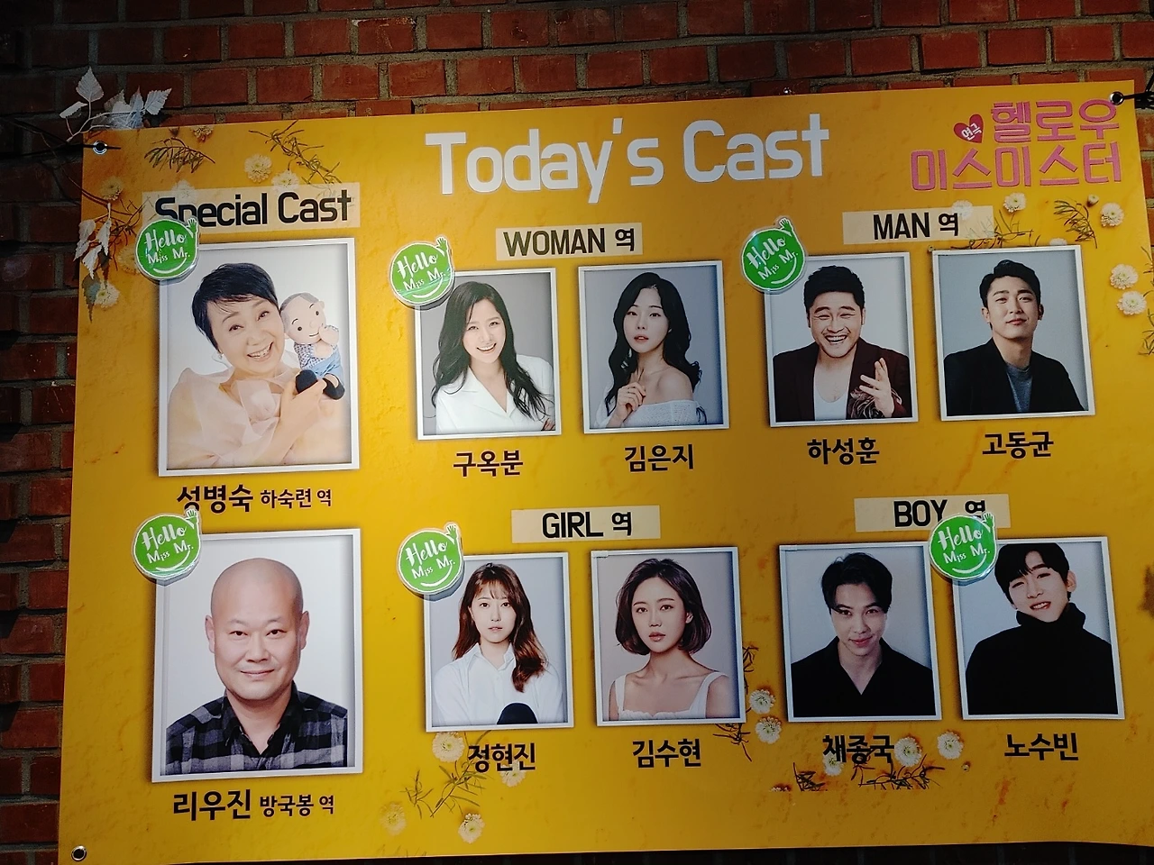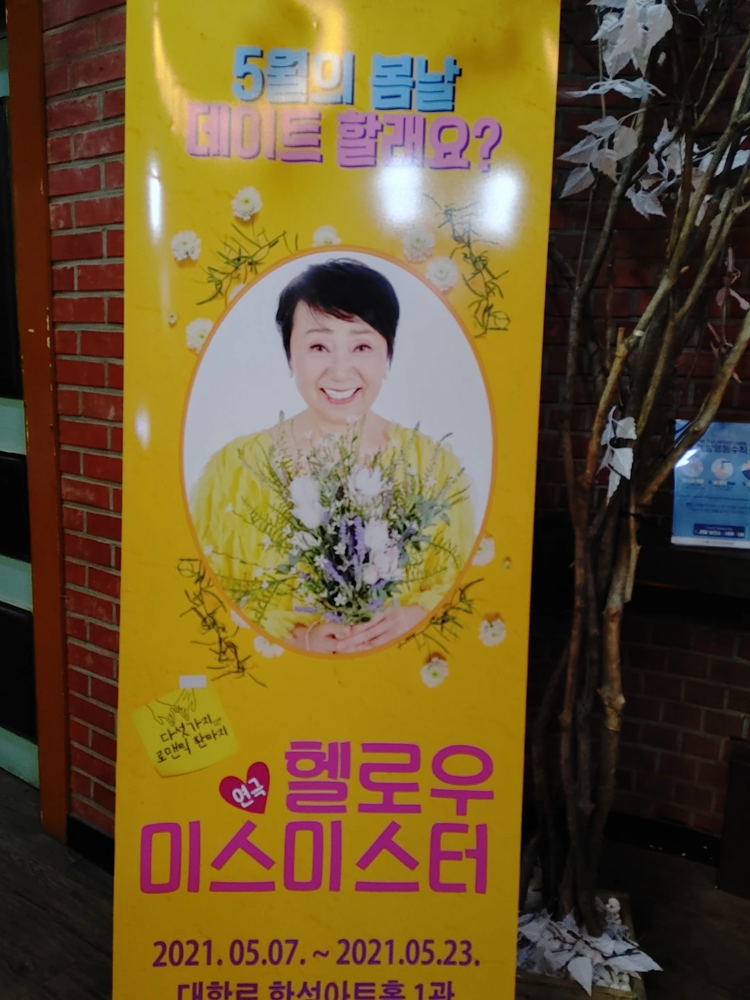 어버이날이 있는 5월에 관록있는 연극배우 성병숙과 리우진을 스페셜 캐스팅하고 극본의 내용을 일부 수정하여 공연중인 헬로 미스 미스터를 보았습니다.