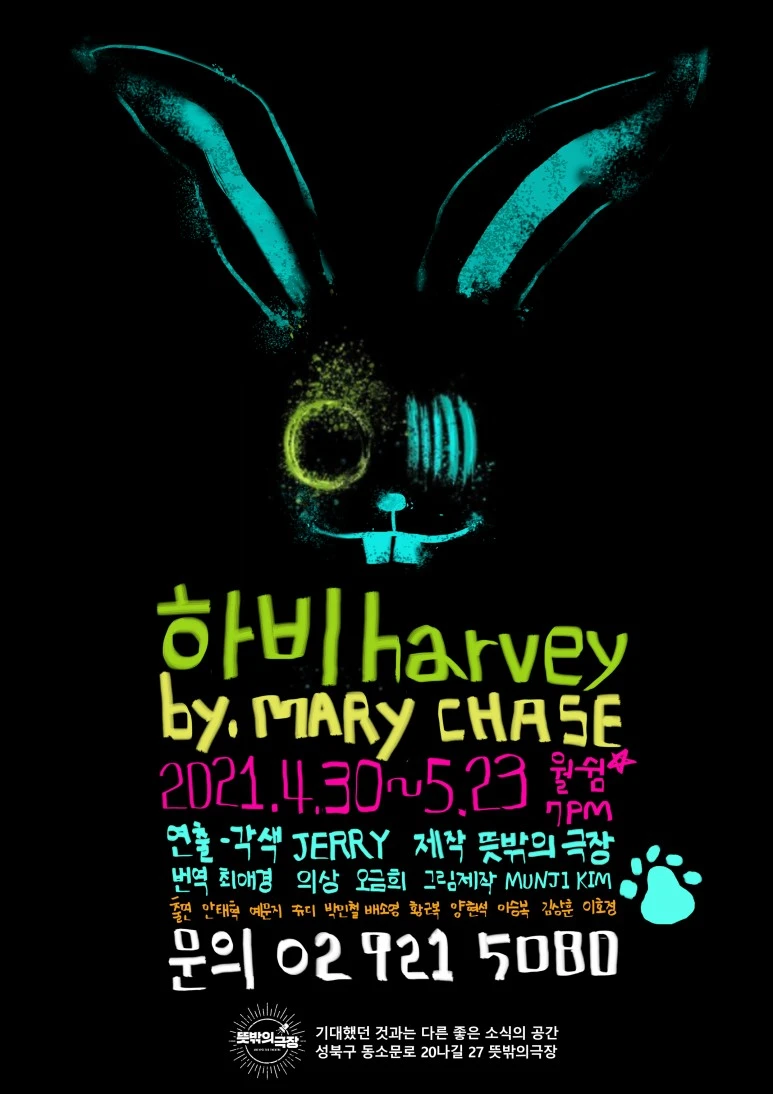 다음 작품으로 '하비'라는 공연을 올리는데 저를 초청하고 싶다는 얘기였습니다..이미 21일에 하비를 보기 위해 예약을 한 상태라고 대답했습니다만, 자신들의 작품을 인정해 훌륭한 리뷰를 써 준데 대한 감사의 뜻으로 초청하고 싶다면서 21일과는 다른 캐스팅이니 시간이 되면 와달라고 하더군요.