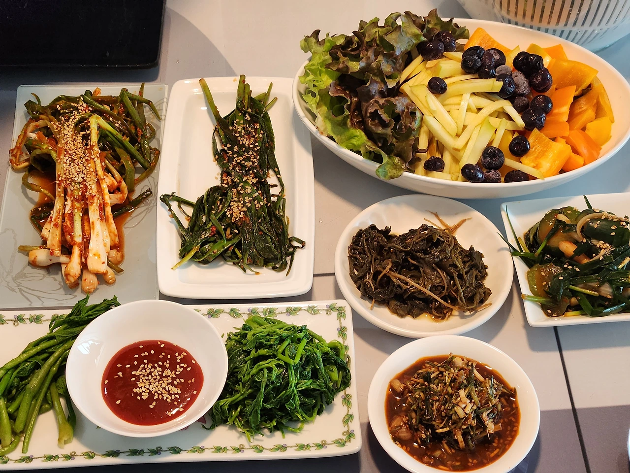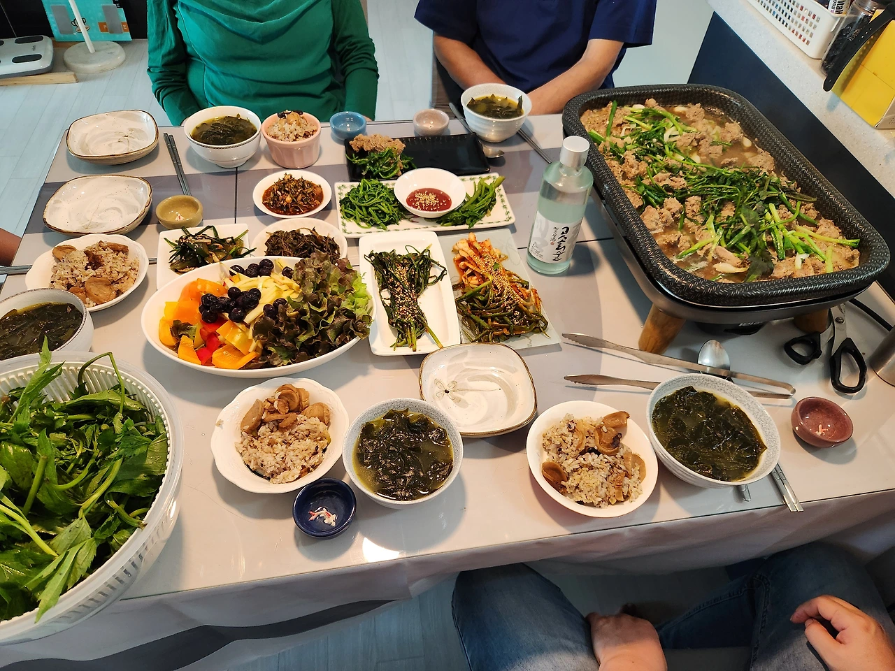 친구가 챙겨준 각종 산푸성귀와 장아치와 최강의 염장미역국 등속을 갖추고 103번째 전통주 제주 고소리술과 함께 맛난 연회를 즐겼습니다.
