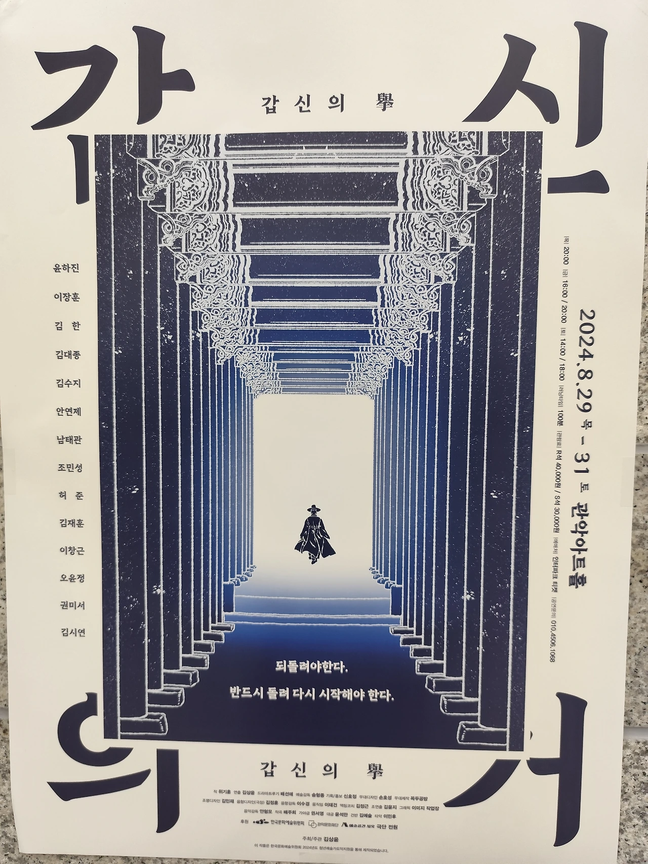서서에 대한 세밀한 묘사보다는 정변이 일어난 당시에 긴박함과 긴장감을 잘 표현했다는 생각이 들었습니다. 제가 운전을 잘못하여 지각으로 못 볼 뻔한 작품이기에 더욱더 기억에 오래 남을 것 같네요.