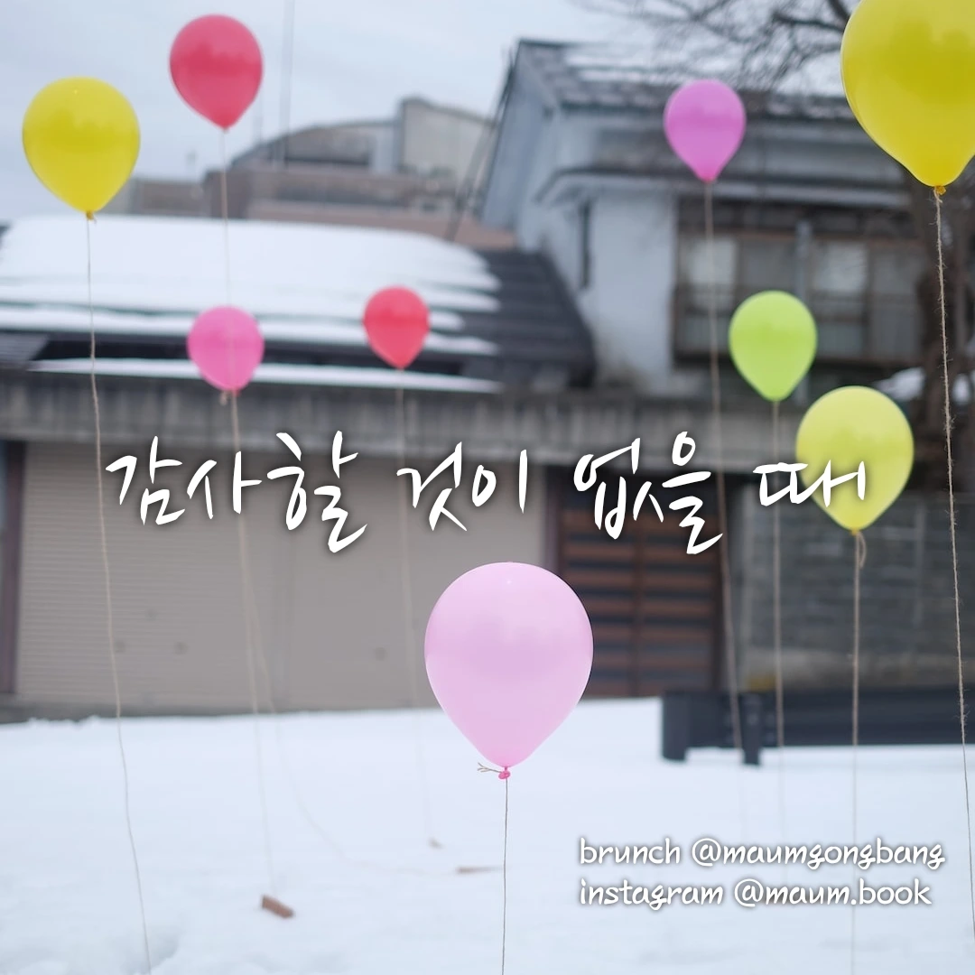 사는 게 감사하지 않은가? 지금 처한 모든 상황이 최악이 된대도 그렇게 말할 수 있는가. 우리에게는 일어나지 않아서 좋은 일들이 많다. 그러므로 우리는 아무 일도 없음에 감사할 수 있다.