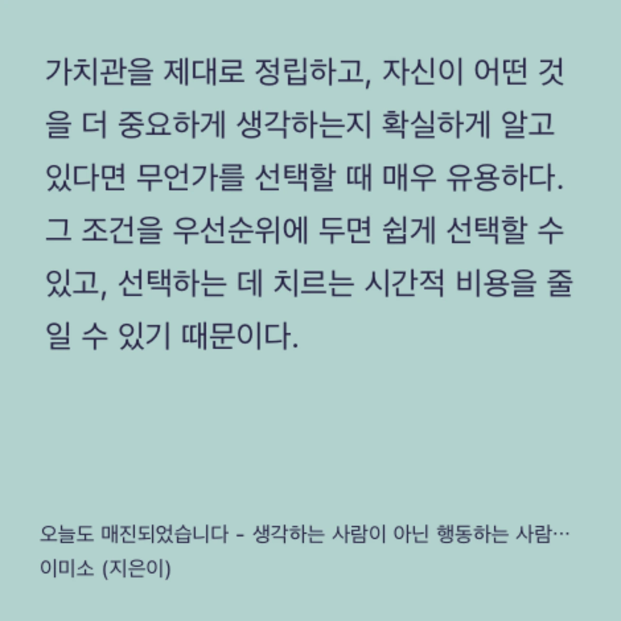 발 빼는 것은 빠를수록 좋다고 하지만 어쩐지 지금 당장은 다른 회사에 가도 만족하지 못할 것 같았다. 처음 이곳에 이직한 이유도 '100%의 확신' 보다는 '나다운 삶을 위한 시작점'이라는 목표를 잡고 나온 것이기에 직장의 변화보다는 '나에 대한 고찰'이 우선이라는 생각이 들었다.