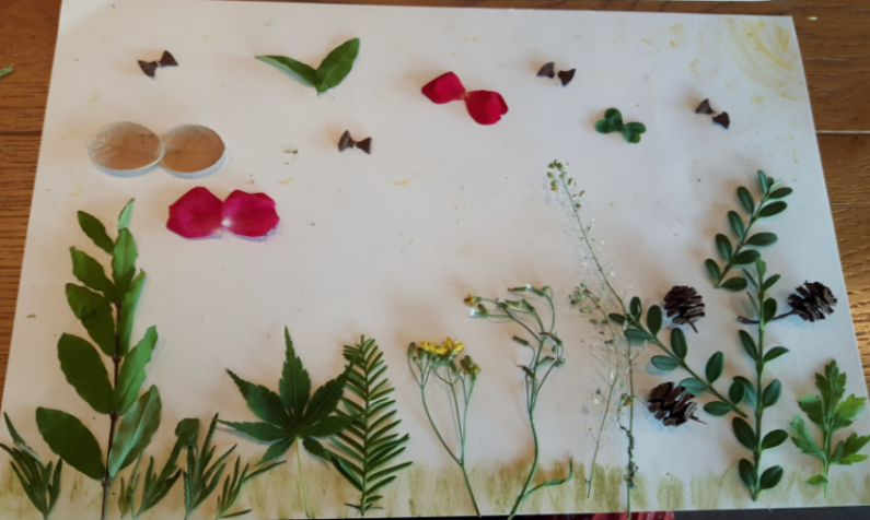 색지를 고른 후 그 안을 자연물로 꾸민다. 고르는 색도 배치하는 모양도 사람마다 가지가지다. 작업을 하며 조금씩 말이 많아지는 경우도 있고 아무런 말이 없기도 하다. 작업이 끝난 후 작업 중에 들었던 마음에 대한 이야기를 나눈다. 시작할 때 당황하거나 낯설지 않았는지, 그리고 하는 과정에서는 어떤 기분이 들었는지, 그리고 지금은 어떤지를 떠올려 본다.
