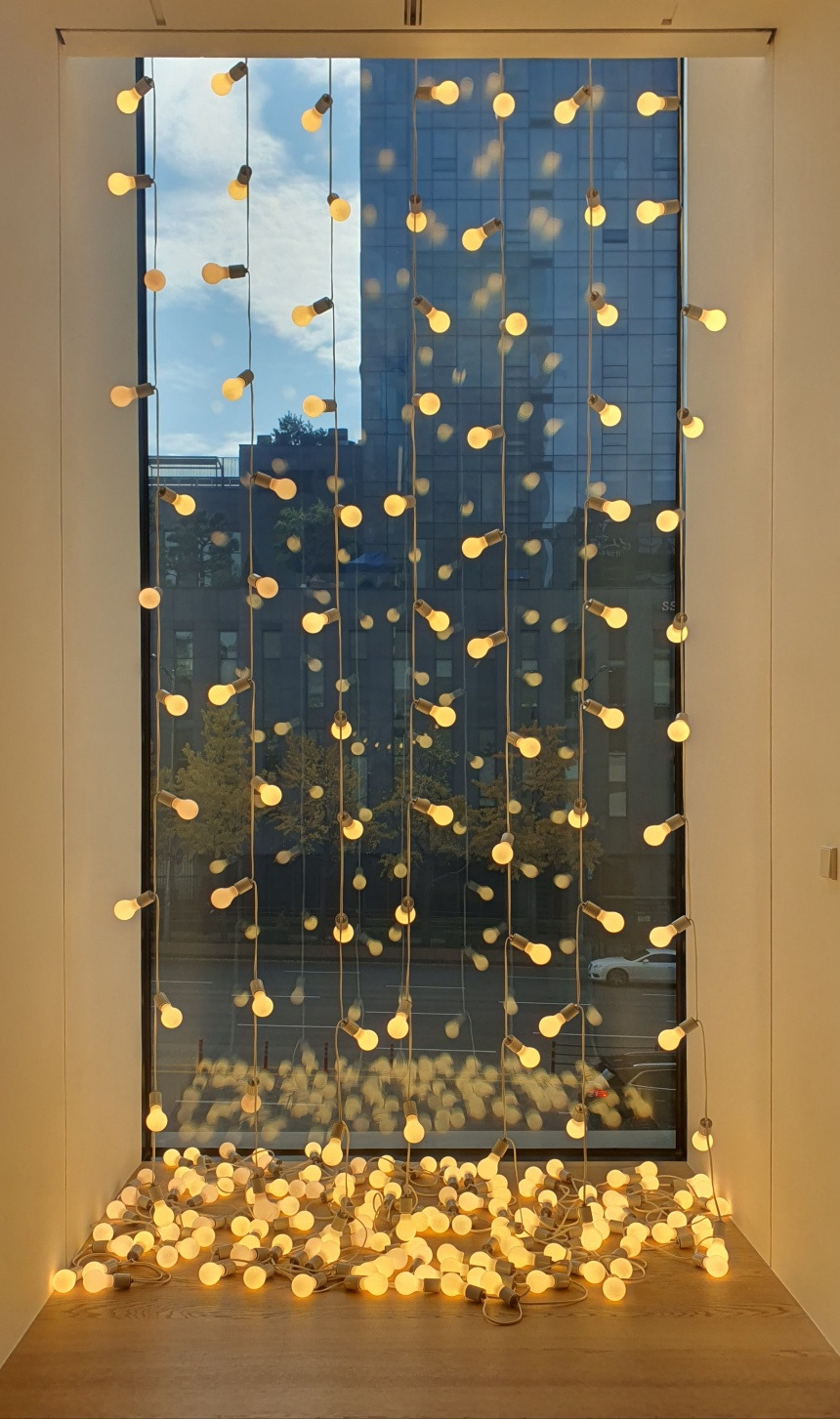 창문 앞에 전구가 빛나고 있다. 얼핏 실내 장식물인가 하고 지나칠 수 있겠지만 이것은 펠릭스 곤잘레스-토레스(Felix Gonzalez-Torres, 1957-1996)의 <스톡홀름을 위하여>라는 작품이다. 펠릭스 곤잘레스-토레스는 오랜 파트너인 로스 레이콕(Ross Laycock, 1959-1991) 사망 후 그를 그리워하는 마음으로 이 작품을 만들었다.