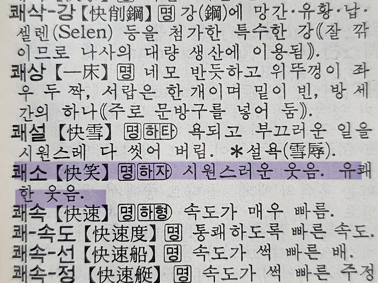 (명) 시원스러운 웃음. 유쾌한 웃음