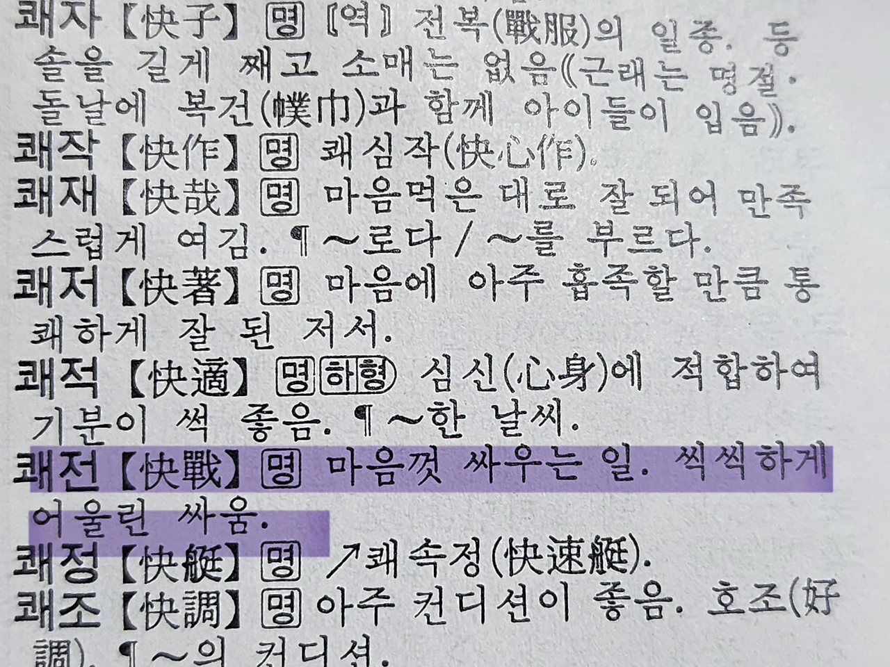 쾌전은 멱살잡이의 의미가 아니다.