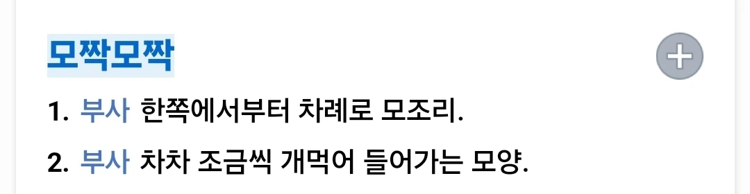 예: 누에가 뽕잎을 모짝모짝 갉아먹는다.