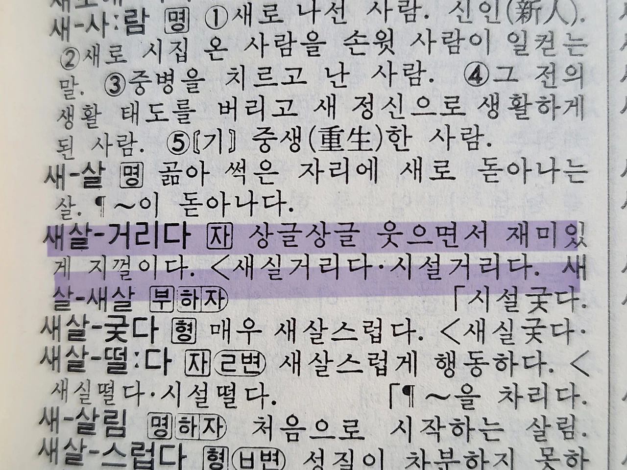 (자) 상글상글 웃으면서 재미있게 지껄이다.