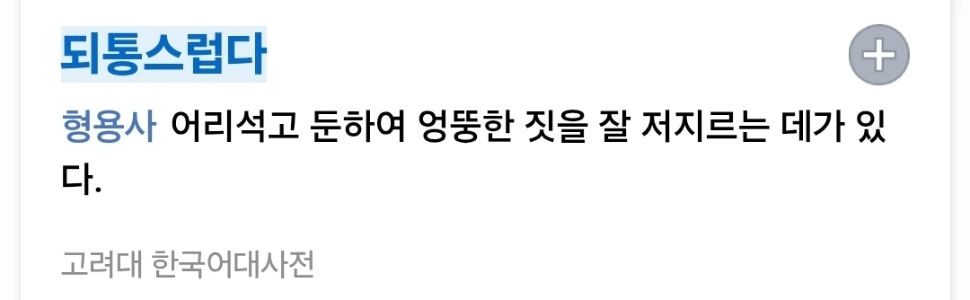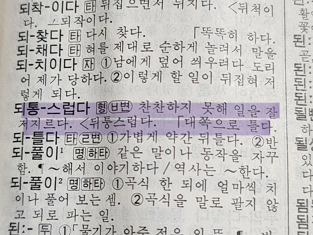 (형) 찬찬하지 못해 일을 잘 저지르다 < 뒤퉁스럽다.