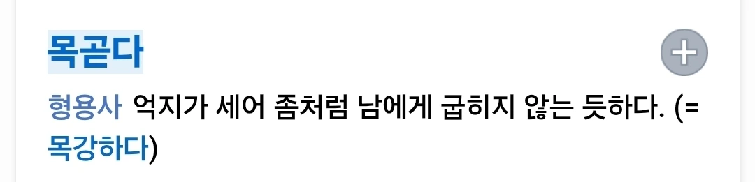 (형) 어거지가 세어 남에게 호락호락하게 굽히지 않다. 목강하다.
