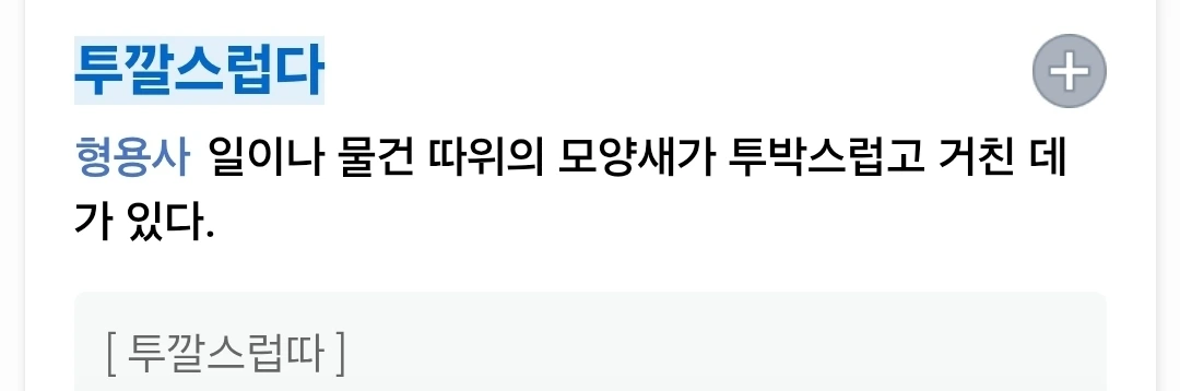 (형) 일이나 물건의 모양새가 투박하고 거칠다