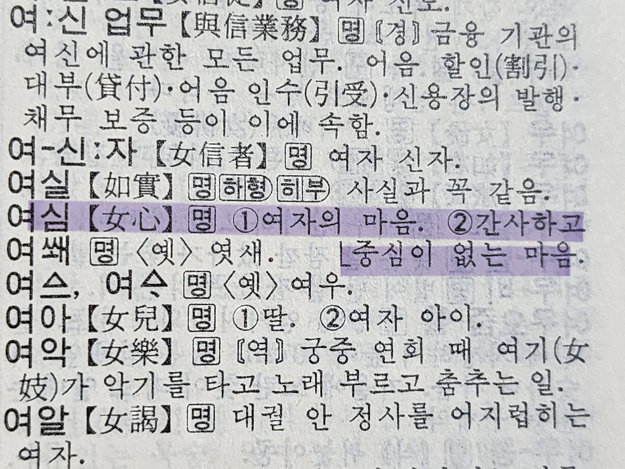 사전에서 ‘여심’을 찾으면 이렇게 적혀 있다.