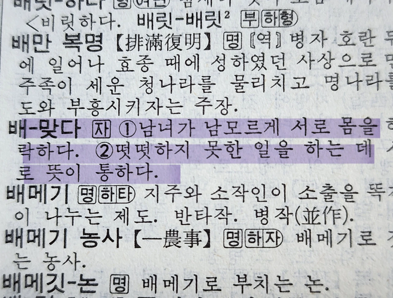 배 맞다는 어감부터가 은밀하고 켕기는 뉘앙스를 품고 있다.