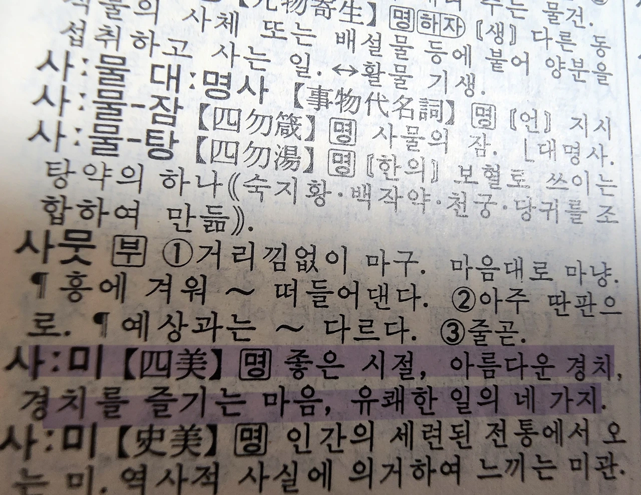 '아름다운 일의 네 가지'를 정의한 단어가 있는 줄도 몰랐다.