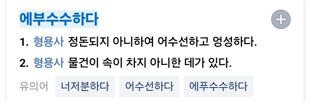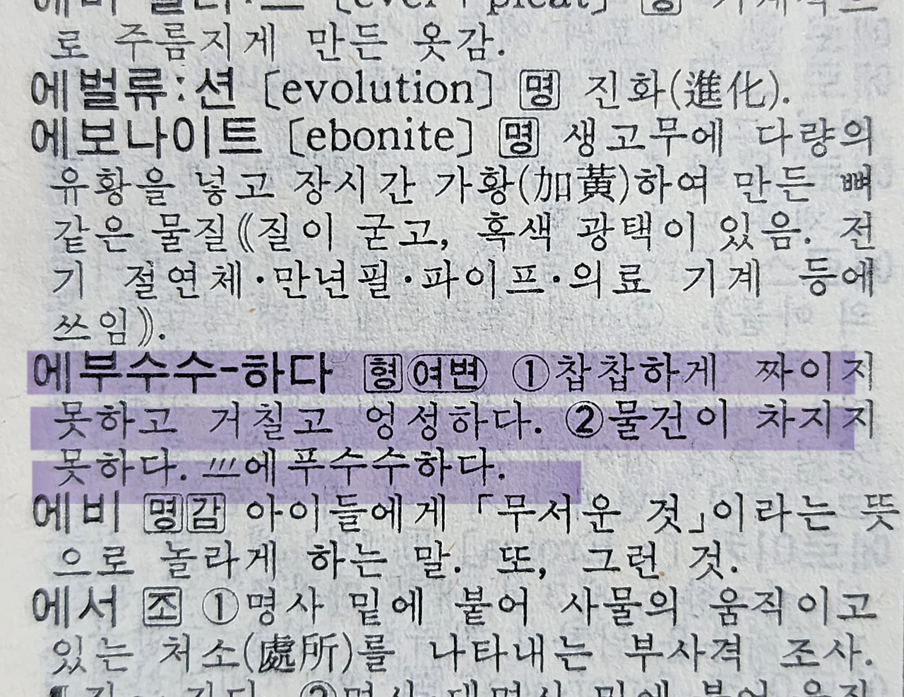 앞으로 ‘물건이 그지 같다’는 표현 대신, ‘에부수수하다’라고 바꿔볼까 한다.