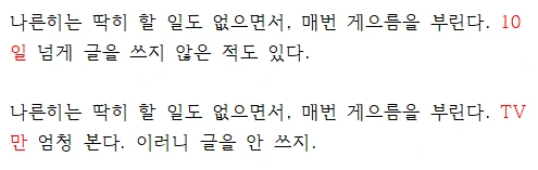 이렇게 줄 끝에 숫자나 영문이 걸려 다음 글자가 밑줄로 내려가는 경우, 숫자나 영문이 아래 글자와 붙을 수 있도록 자간을 조절한다.