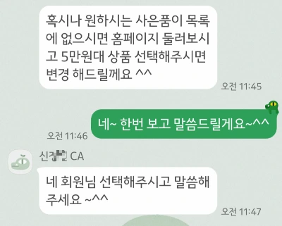 신정인CA라는 담당자와 대화가 시작되었어요.
