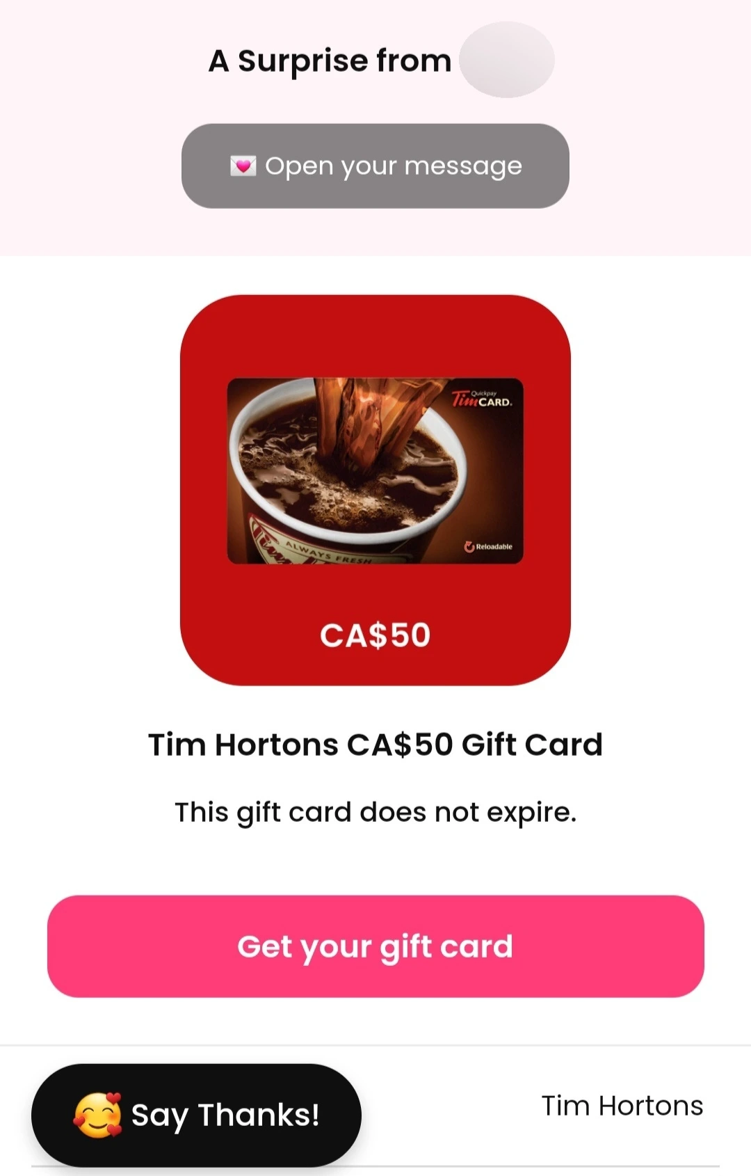 "혹시나 하는 마음에 검색해 봤는데 이런 게 있어서 함 보내봅니다~ 즐거운 시간 보내세요^^ "라는 메시지와 함께 팀홀튼스 기프트카드가 도착해 있었다. 한국에서 팀홀튼스 기프트 카드를 보낼 수 있다니 전혀 예상하지도 못했던 일이다. 아이 수영 끝나고 나면 집에 가는 길에 있는 팀홀튼스에 들러 늘 팀빗 박스 하나를 사서 가곤 했는데, 아이가 팀빗 박스를 들고 있는 사진을 찍어 가족 채팅방에 늘 보낸 적이 있는 게 생각이 났다. 캐나다 생활의 소소한 참새방앗간인 팀홀튼스에서 보내는 우리를 떠올리곤 기프트카드를 보내주다니. 오래전이라 잊고 있었지만, 내가 새로운 동네로 이사 갔을 때도 형부는 동네 지도를 찾아보며 가장 가까운 곳에 있는 커피전문점의 기프트카드를 보내줬었다. 아이를 유모차에 태워 낮잠을 재운 후 커피를 마시며 보내는 한두 시간이 하루의 유일한 외출이자 활동이었던 때라 형부의 선물은 더없이 필요한 응원이었다.