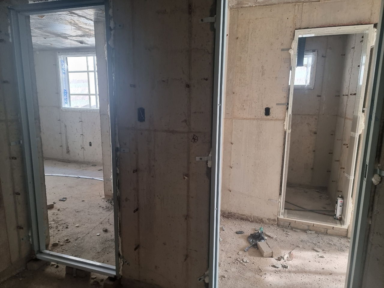 에어컨 배관작업, 그리고 발주된 창호와 문틀을 설치한다.