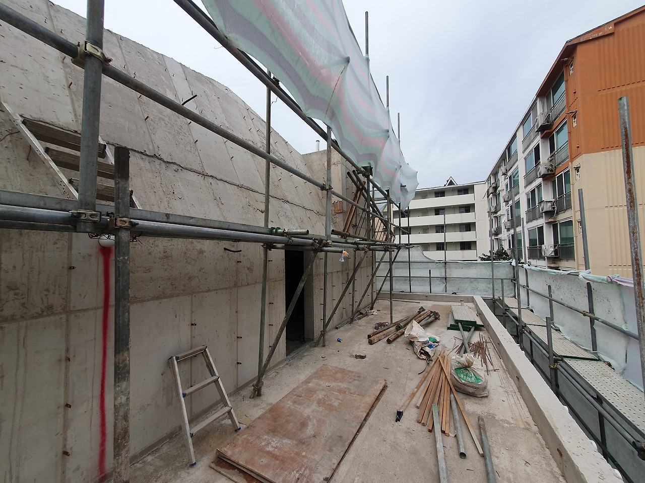 마지막 층인 4층의 콘크리트 타설이 완료되었고