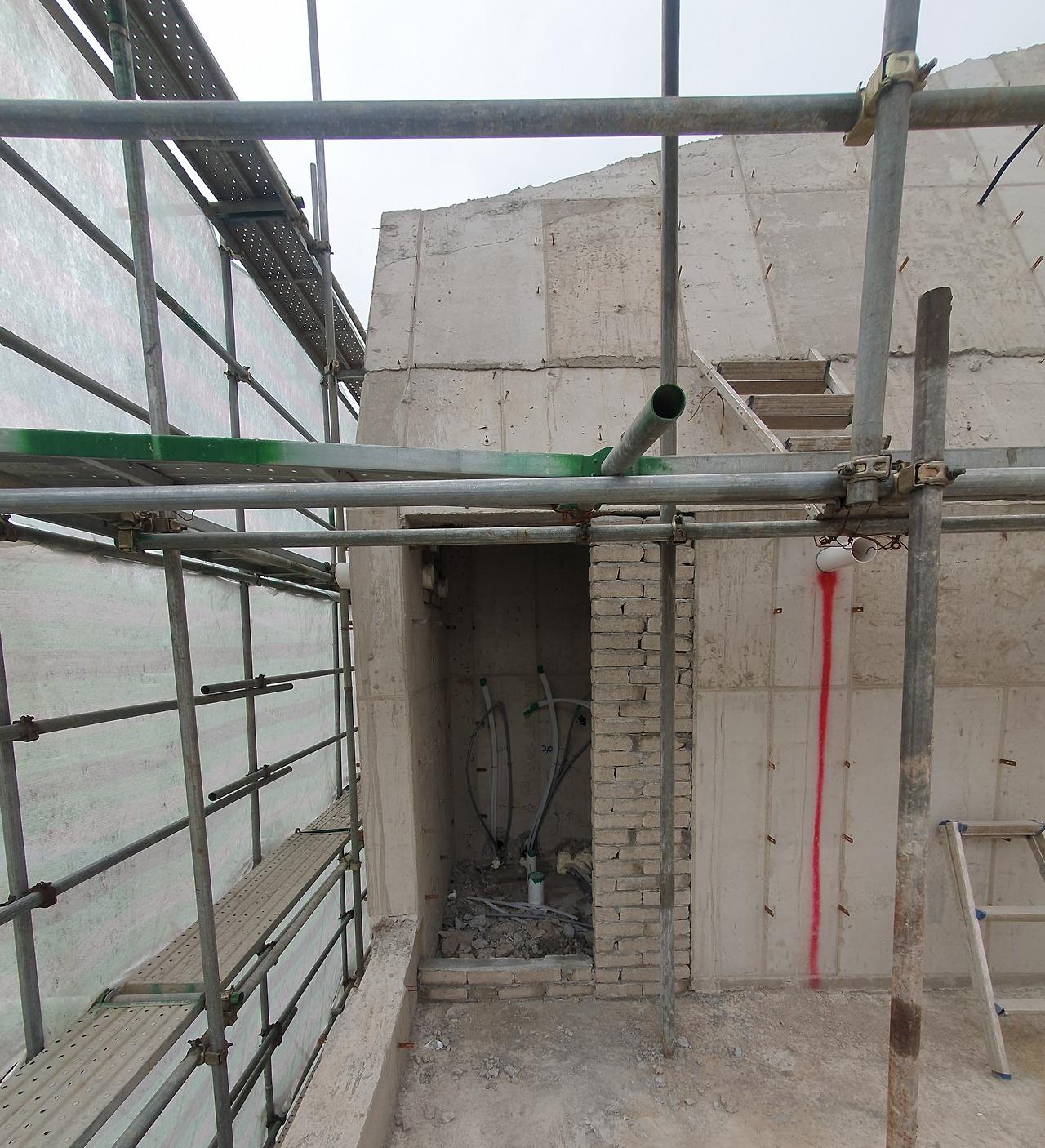 2주 뒤 건물 외벽의 외장재가 시공될 예정이므로 그 전에 필요한 공사를 완료한다.