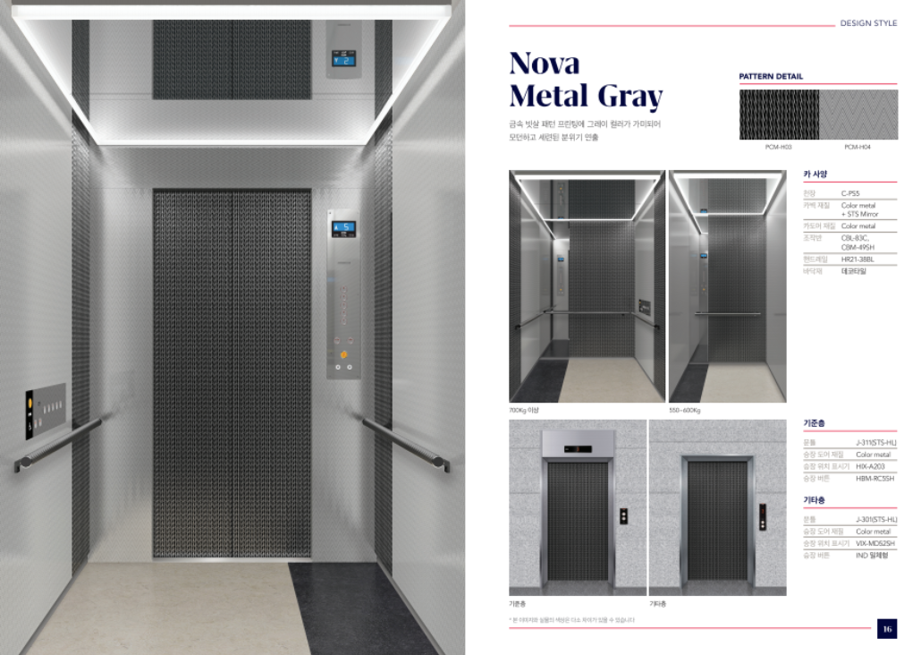 엘리베이터 제품을 결정한다. 오티스, 메탈그레이 색상으로 했다.