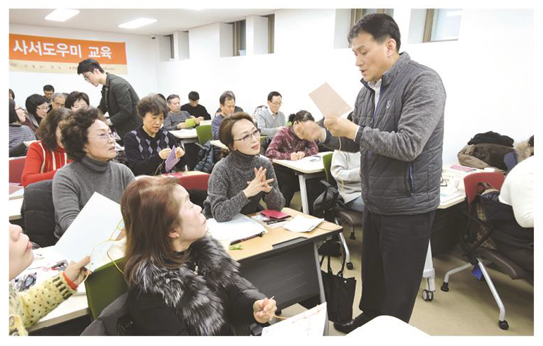주민센터 2층에 있다. 엄마와 함께 온 어린이들이