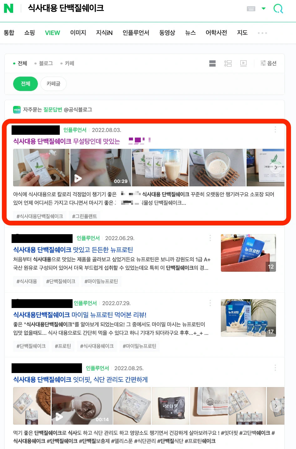 목표는 메인 키워드 '식사대용 단백질 쉐이크'의 상위노출입니다.
