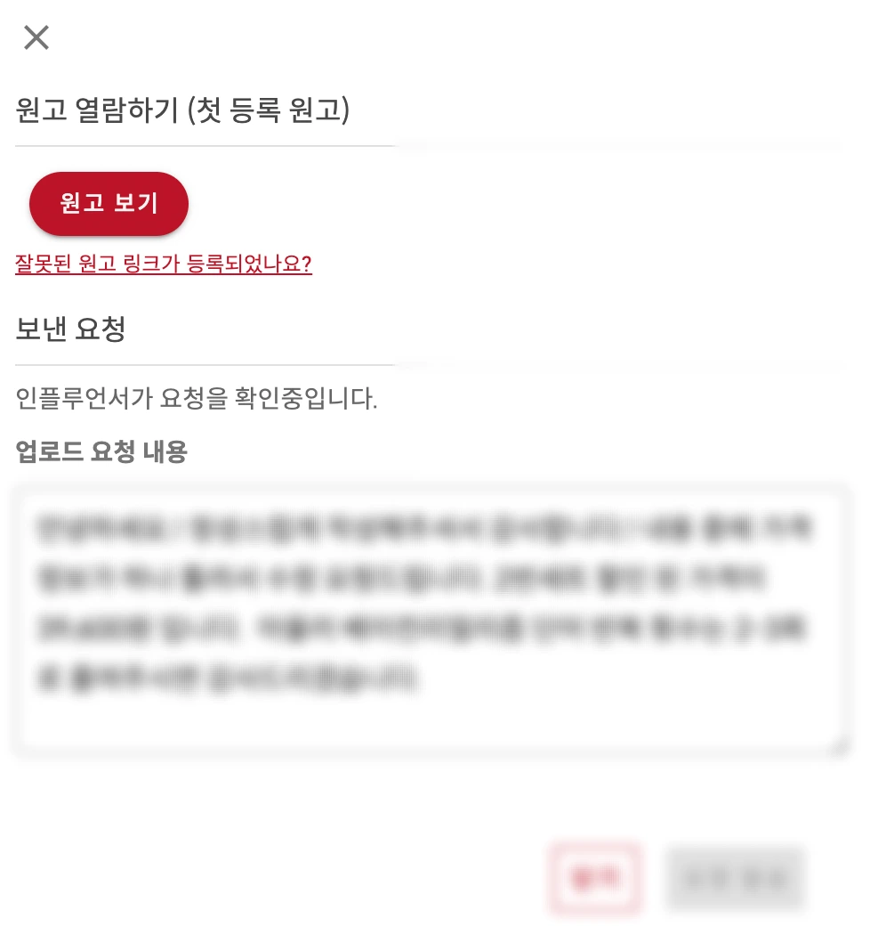 캠페인 게시글 게시 전에 원고를 미리 열람할 수 있고, 수정요청을 직접 보낼 수 있습니다.