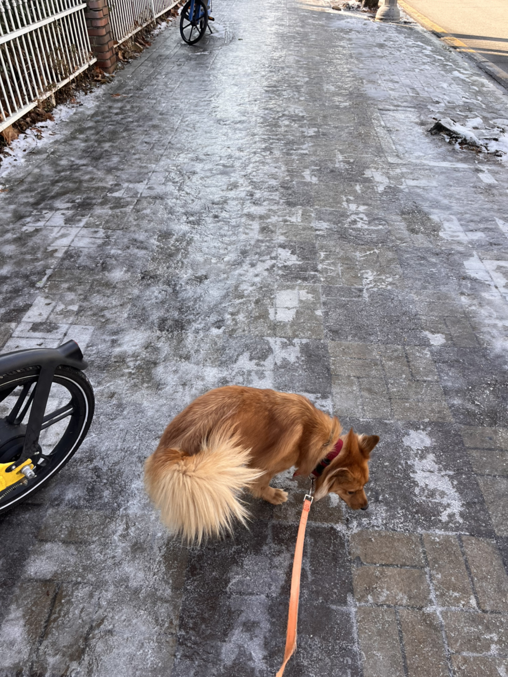 그러게. 이런 날은 눈쌓인 인도가 더 미끄럽네.