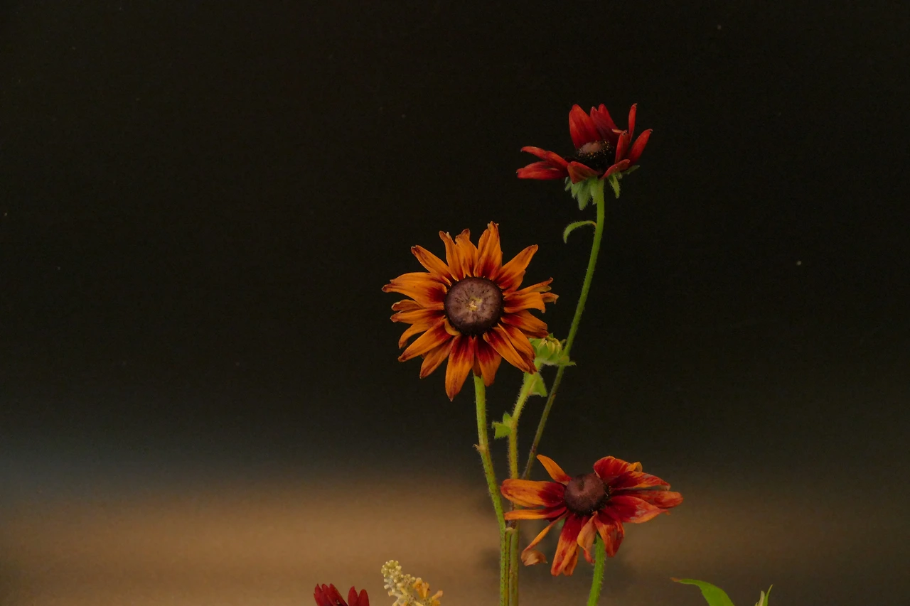 마지막 8월의 꽃으로 소개하려는 것은 '루드베키아'이다. 작은 해바라기, 해바라기를 닮은 꽃이라는 애칭이 있다. 말 그대로 해바라기를 닮았다. 가운데가 크고 둥글고 어둡고, 그 가운데를 뾰족하고 작은 꽃잎들이 둘러싸고 있다. 루드베키아도 해바라기만큼이나 다양한 컬러가 있으나(해바라기도 노랑만 있는 건 아니다), 가장 흔한 것은 가운데가 까맣고, 꽃잎이 노란색인 것이고 자줏, 또는 주황빛의 꽃잎을 가진 것도 흔히 볼 수 있다.