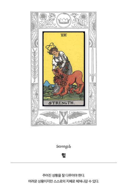이 챕터에서 사용한 카드는 Strength(힘) 카드였어요.