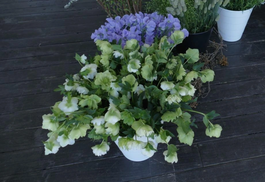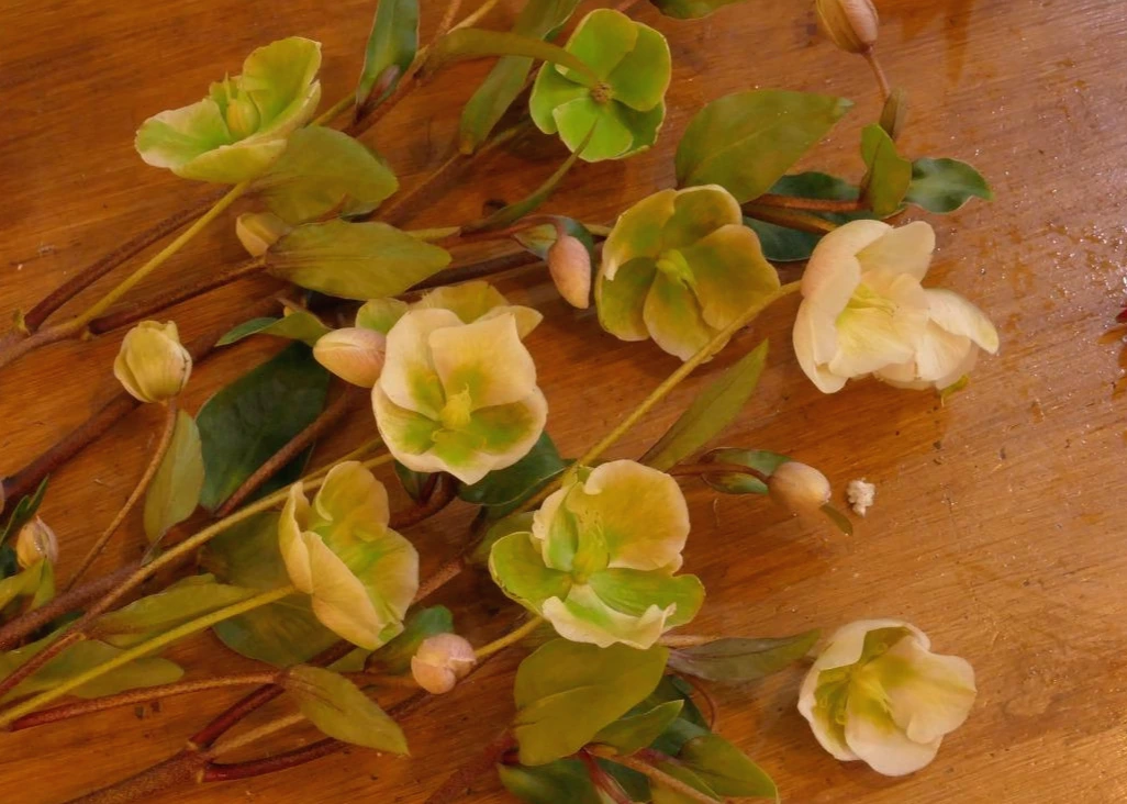 섬세한 생김에 단단한 꽃의 얼굴도 좋지만 내가 헬레보러스를 좋아하는 이유 중 또 하나는 유연한 가지에 있다. 통통한 헬레보러스의 가지는 나무처럼 단단해 보이지만 어떻게 휘어도 쉽게 부러지지 않을만큼 유연하다. 꽃다발을 만들다보면 가지가 약한 꽃들은 한 두송이 쯤 꺽이기 마련인데 헬레보러스는 다소 거칠게 다루어도 꺽이거나 상처가 나지 않는다. 물에 넣지 않고 몇시간 있어도 쉽게 시들지 않는다. 거친 계절을 제철로 둔 꽃답다.