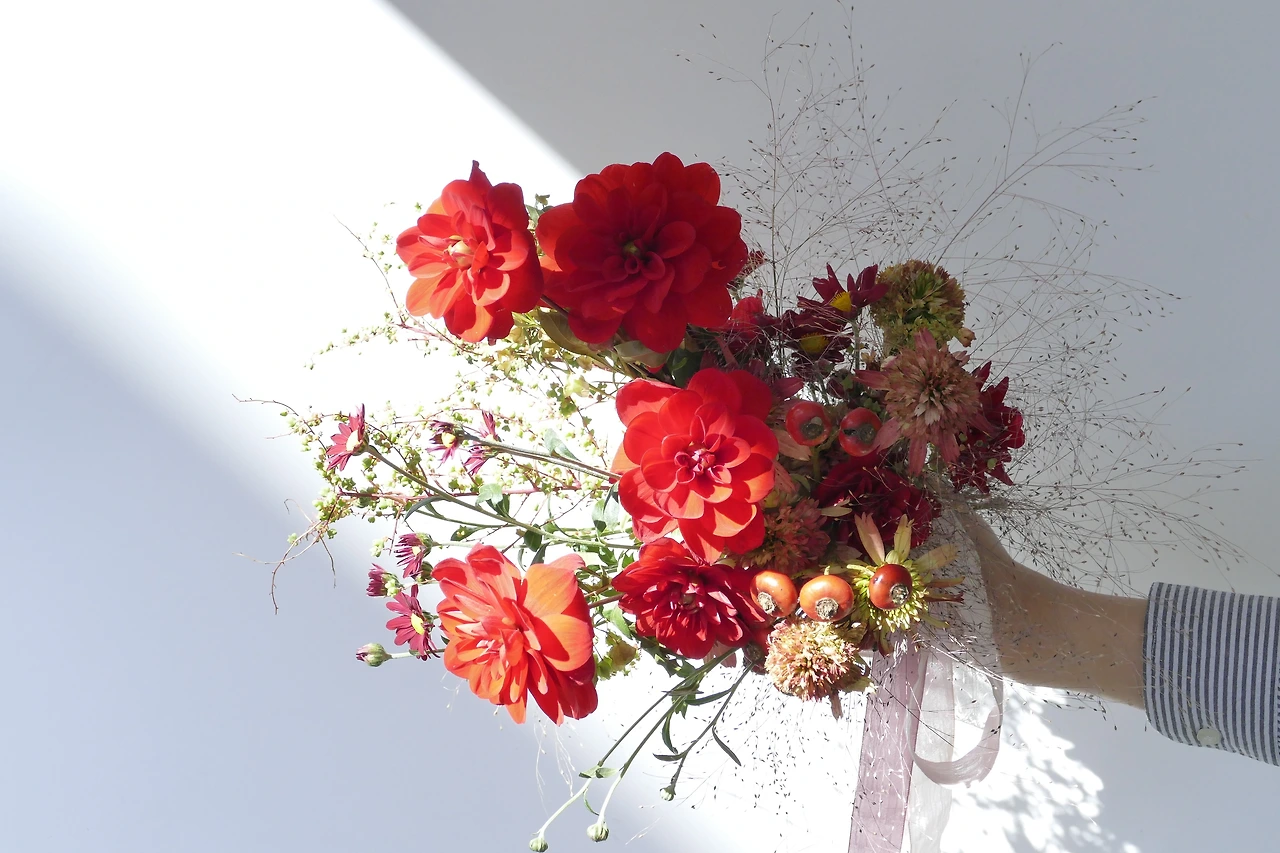 다른 모든 장점보다도 그의 짧은 수명이 나를 자꾸만 가로 막는다. 다알리아의 줄기는 대나무처럼 속이 텅 비어 있고, 중간 중간 마디가 있어 내구성이 무척 약하다. 총 열대의 다알리아를 사면 다듬다가 세 대쯤은 부러뜨리고 만다. 아무리 조심한다고 해도 그렇다. 게다가 2~3일이면 수명을 다한다. 어떤 다알리아는 물 밖에 두어시간만 두어도 속절없이 시들어 버린다. 반나절만 버티면 되는 웨딩 부케로 사용하는 것도 꺼려질 정도이다.