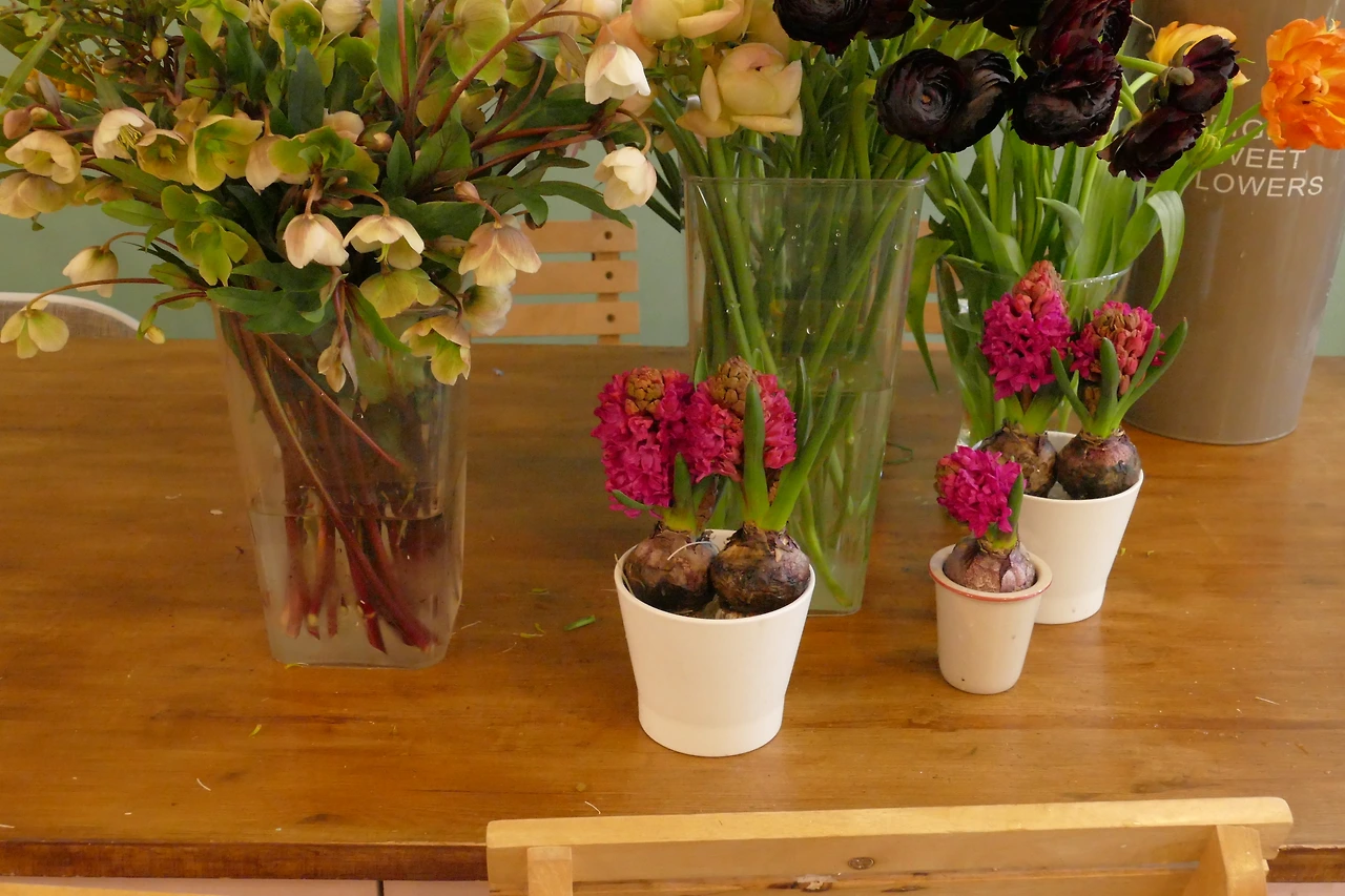 히아신스나 라넌큘러스는 구근식물 중 꽤 긴 기간동안 볼 수 있는 꽃들이다. 그래서 꼭 2월이 아니어도 되지만, 2월부터 본격적으로 나오는 양이 늘어나고, 종류도 많아진다. 히아신스는 화분으로 많이 키우는 것처럼 작은 꽃이 가득 피어 있는 향기로운 아이이고, 라넌큘러스는 향은 거의 없지만 얇은 베일이 몇백겹 쯤 쌓인 듯 우아한 모습이 아름다운 꽃이다. 웨딩부케로 많이 쓰는 하노이라는 품종이 가장 유명하지만, 그 어떤 품종을 골라도 만족스럽다. 봉오리로 된 것을 사도 천천히 모두 만개하는 경우가 많기 때문에 너무 활짝 피기 전에 사서 끝까지 즐기는 것도 좋다. 다만, 속이 비어있는 줄기에 비해 꽃이 너무 커서 만개한 후에는 그 무게를 이기지 못하고 목이 꺾이는 경우가 많으니 운반할 때나 물을 갈아 줄 때 주의해야 한다. 연약한 모습에 비해 수명이 꽤 긴 꽃이다. 그래서 봄이 끝나면 라넌큘러스와 이별해야 하는 것 때문에 슬퍼하는 플로리스트가 적지 않다.