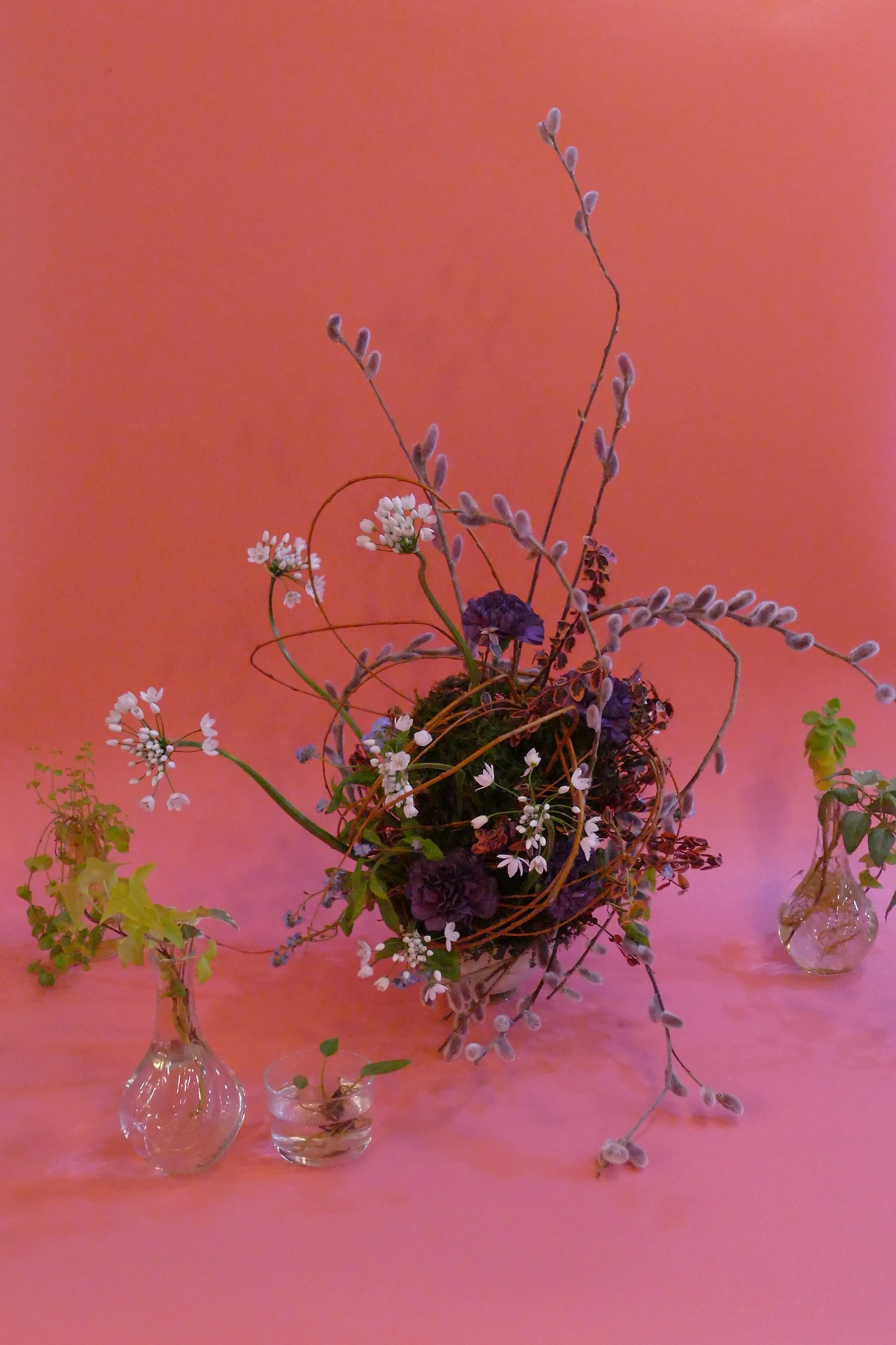 밖으로 품어져 나오느 에너지를, 아직은 준비중이지만 누구라도 들여다 볼 수 있는 발전의 가능성을 표현하고 싶었다. 홍버들, 능수버들 같이 유연하고 나긋나긋한 가지들로 역동적인 느낌을, 코와니와 같은 꽃으로 움트는 봄의 설렘을 표현했다.