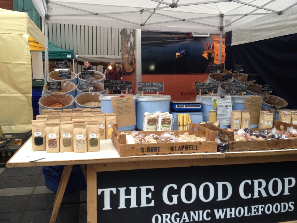 마켓이 특별히 땡기는 날인가 보았다. 템블바 마켓을 나와 영화를 한편 보려고 IFI 영화관으로 향하던 중 마음이 바뀌어 방향을 틀었다. 다시 가보고 싶었던 다른 마켓 하나가 생각난 탓이다. 뉴마켓 스퀘어에 있는 '더블린 푸드 쿱' 마켓. 최근에 친구 기림이 덕분에 알게 된 이곳은 우리나라의 생협 같은 유럽 푸드조합에서 운영하는 마켓이다. 모든 야채와 과일이 유기농이고, 건물 입구에 있는 가게에서는 그외의 다양한 종류의 친환경 제품들을 판다. 평일에도 문을 여는데, 토요일에는 과일이나 야채 가게뿐 아니라 베이커리, 인도음식, 스페인음식 등 조합원들이 운영하는 푸드매장과 핸드메이드 액세서리, 중고책을 파는 가게들까지 빌딩 안을 가득 메운다.