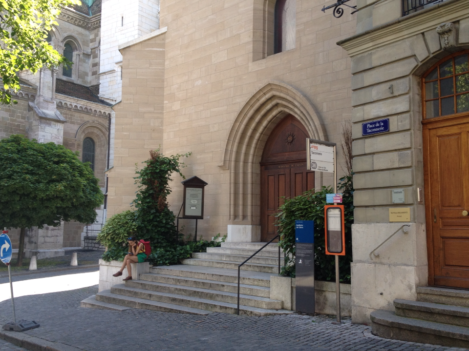 엄마와의 스위스 여행 둘째날, 우리는 제네바에 있었다. 구시가지에 밀집해 있는 크고 작은 박물관들과 대성당을 둘러본 뒤 점심을 먹기 위해 성당 근처 작은 플라자의 모퉁이 벤치에 자리를 잡은 참이었다.
