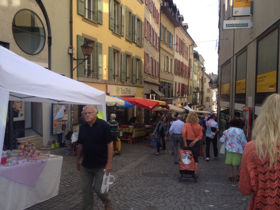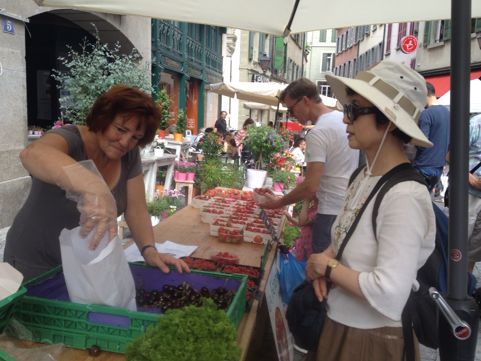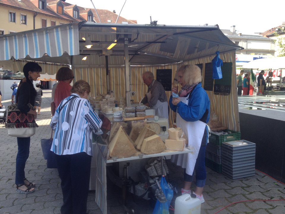 다행히 엄마도 장 구경은 좋다 하셔서 다음날 일정은 구시가지에서 열리는 금요장 구경으로 시작했다. 유럽에 있는 대부분의 도시는 파머스마켓의 전통을 가지고 있다. 주로 주말 이른 아침부터 오후까지 마을센터를 중심으로 그 지역에서 생산된 싱싱한 야채와 과일, 수공업으로 생산한 치즈, 소세지, 빵, 오일, 잼 등을 맛보거나 살 수 있는 작은 천막가게들이 길게 늘어선다. 수퍼마켓이 아닌 그런 지역장터에서만 느낄 수 있는 생기와 수선스러움은 내가 가장 좋아하는 여행의 부분이기도 하다. 엄마와 나는 체리와 사과 조금, 무게로 달아파는 호밀빵 4분의1 조각, 양파와 파프리카를 올리브오일에 재어 병에 담은 수제스프레드를 샀다. 물론 나는 중간중간 열심히 시식용 치즈와 과일을 집어먹는 것도 잊지 않았다.
