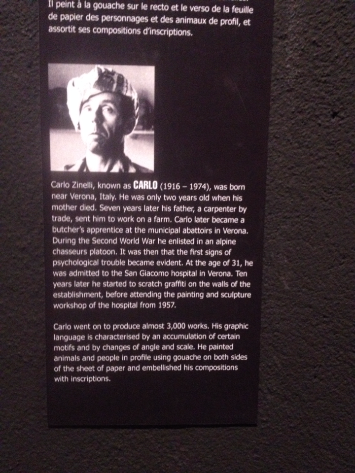 장에서 산 빵과 과일로 점심을 간단하게 때운 뒤 우리는 버스를 타고 아르브뤼 미술관(Musee de l'Art Brut)으로 갔다. 살아생전 우리 사회에서 소위 '예술가'로서 교육 받은 적도 인정받은 적도 없으나 그들의 삶으로 진정한 '예술'을 했던 사람들의 작품을 전시하고 있는 곳이다. 나에게는 작품 하나하나가 '충격적'이었다. 그것은 시각적으로 아름다워서라기보다 누군가를 의식하지 않고 철저히 자아의 깊은 곳에서 건저올린 고뇌와 욕망의 절절함이 전해주는 아름다움 때문이었다. 그래서 작품 옆에 붙어 있는 작가의 사진과 작품 배경을 읽지 않고 대충 지나칠 수가 없었다. 작가 대부분이 정신질환을 앓았거나 어려운 가정환경에서 성장한 사람들이었고, 정신병원에서 생을 마감한 사람들도 많았다. 또 생후에야 그들이 남긴 작품들을 발견한 경우도 많았다. 내가 사회의 아웃사이더라고 느꼈던 어떤 균열과 아픔의 순간들이 떠올랐다. 물론 나는 그들만큼 철저히 고립되거나 소외된 적은 없지만, 어느 지점에선가 맞닿아 있는 듯 느껴졌다.