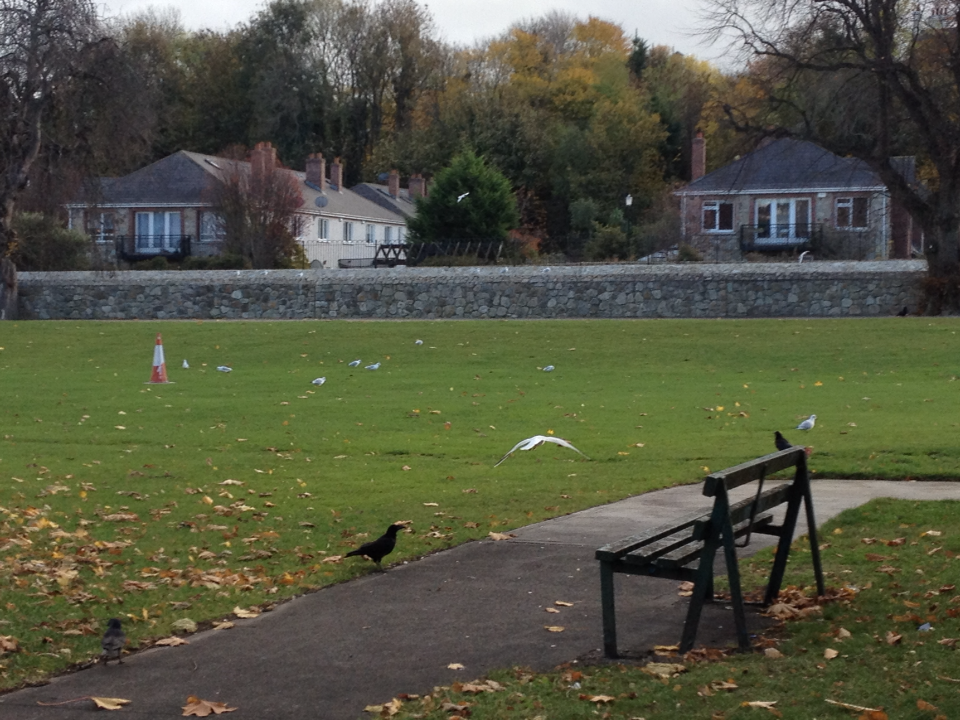 존은 이 길을 지날 때마다 영원히 끝나지 않을 것 같은 공사에 대해 불평했지만, 오랜만에 익숙한 풍경을 보니 그마저 반가웠다. 늘 텅 비어 있는 피자배달가게와 아침마다 존과 커피를 사가는 센트라 편의점을 지나 오른쪽 좁은 길로 꺾어져 걸었다. 공원을 가로질러 가기 위해서다. 언뜻 보면 평범한 공원이지만, 공원 너머 언덕 위의 오래된 교회와 집들, 하늘 그림자 속을 날아다니는 갈매기와 까마귀들이 함께 만들어내는 콜라보레이션은 언제 봐도 감동적이다. 내가 꼽는 가장 아일랜드스러운 풍경 중 하나이기도 하다.