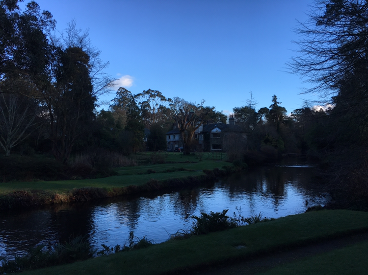 우리는 이정표가 안내하는 추천루트를 따라 돌기로 했다. <야생화>라는 푯말이 꽂혀있는 작은 들판을 지나 커다란 나무들이 양옆으로 호위하는 숲길로 들어서니 청량한 물소리가 들린다. 걸을 수록 물소리도 가까워지더니 이내 눈앞에 작은 강과 흰 다리가 나타났다. 다리 중간쯤 서서 가든 전체를 바라보니 탄성이 절로 나왔다. 맑은 수면 위로 떨어지는 햇살, 각기 다른 모양의 나무들과 사이로 난 숲길들, 그리고 새소리...마치 인상파 화가의 그림 속에 들어와 있는 듯한 기분이었다. 다리 건너편에는 고풍스런 저택과 잘 손질된 정원이 있었는데 '프라이빗' 사인과 함께 굵은 자물쇠가 걸려 있었다. 아마도 가든 소유주의 사택인 모양이었다.
